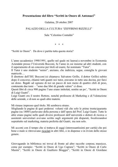 Esempio lettera motivazionale bocconi