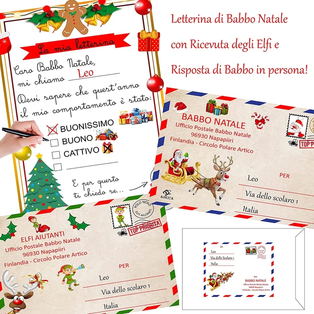 Lettera babbo natale finlandia. Lettera di Babbo Natale dalla Lapponia Lettera di Babbo Natale dalla Lapponia L'originale e autentica Lettera di Babbo Natale dalla Lapponia Finlandese La Lettera di Babbo Natale viene redatta e spedita, direttamente dal mitico Ufficio Postale di Rovaniemi, Circolo Polare Artico, in Lapponia, quello che ogni anno riceve milioni di lettere da tutto il mondo cariche di desideri! Le più belle lettere a Babbo Natale in Lapponia Finlandia ... Babbonatale.fi / Santatelevision video: Lettere a Babbo Natale in Lapponia Finlandia Rovaniemi - Lettera di Babbo Natale Santa Claus Ufficio Postale Principale. Le più belle lettere a Babbo Natale in Lapponia Finlandia ... L’Ufficio postale principale di Babbo Natale a Rovaniemi, Finlandia Ogni anno Babbo Natale / Santa Claus riceve nel suo ufficio postale centinaia di migliaia di lettere. Le lettere arrivano a Babbo Natale da quasi tutti i Paesi del mondo. L’Ufficio postale di Babbo Natale si trova al Circolo Polare Artico a Rovaniemi in Finlandia. Come spedire una lettera per Babbo Natale in Finlandia? Oct 18, 2022 · Esistono diverse tradizioni legate alla spedizione della letterina a Babbo Natale, a seconda delle regioni. In molti casi, la letterina a Babbo Natale viene scritta e spedita entro l’ 8 di dicembre. Spesso, invece, si attende l’arrivo di San Nicola (o San Nicolò) il 6 di dicembre per consegnare la letterina con i propri desideri e richieste.