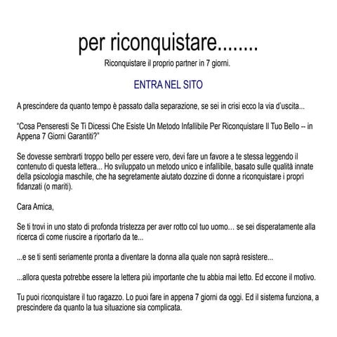 Lettera a te stessa/o per i giorni difficili - BlessYou Io ti avvolgerò comunque in un morbido abbraccio di amore, comprensione e tenerezza. Ogni difficoltà è un'opportunità che la Vita ti sta donando. È il suo modo ... Lettera d'amore per superare una crisi di coppia - Jamadrou Nov 8, 2019 ... Lettera d'amore per superare una crisi di coppia. Hai litigato con il tuo partner? Stai attraversando un crisi nella tua relazione? La raccolta delle vostre lettere con problemi e dubbi d'amore Lettere d'amore · Lettera: "Un amore distante". Un amore nato d'estate sulla spiaggia. Lui pugliese, lei invece vive a Milano. Una lettera... continua. di: ...