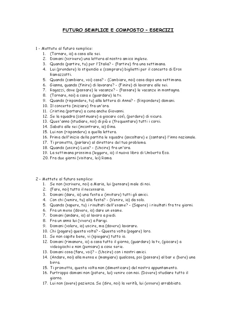 Futuro Semplice e Composto-Esercizi | PDF